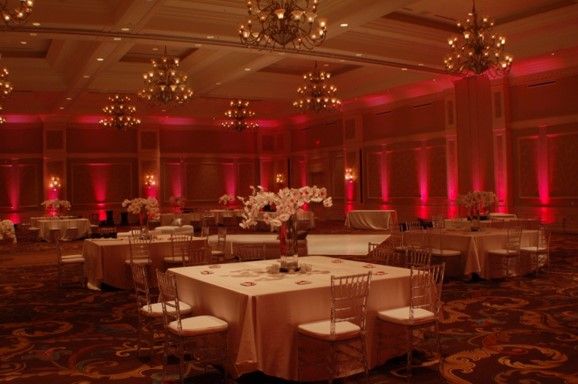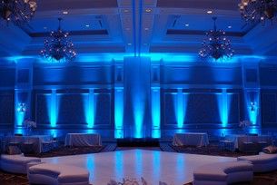 Up lighting is designed to create ambient lighting in a room from the floor up. Sometimes this is accented on columns or wall sconces, and other times it is designed for a full wash of saturated color on a wall.
